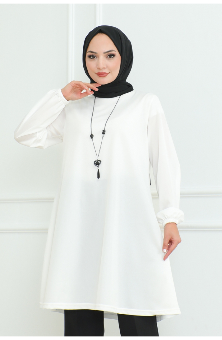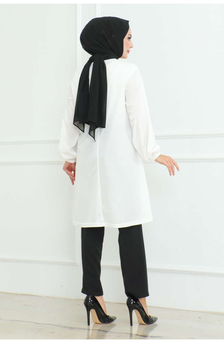 Oversize Krep Tunik 43-02 Beyaz